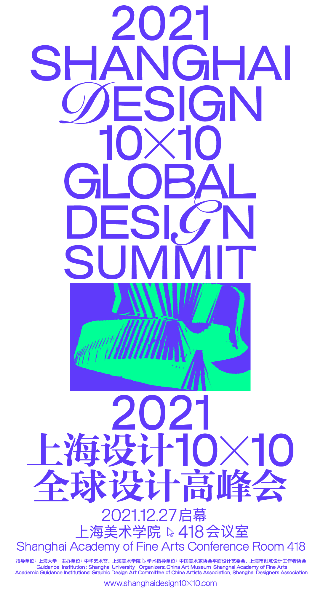 2021年12月27日,“2021‘上海设计10×10’全球设计高峰会”在上海大学上海美术学院成功举办,会议上半场由全球十个顶尖设计组织的设计领袖和精英针对二十一世纪平面设计未来的最前沿问题展开学术性分享和前瞻性讨论,下半场由国内的设计专家与新生代设计师们针对海报的边界、海报的未来等主题发表演讲,以此形成“上海设计”和全球设计之对话。上海大学党委常委、副校长聂清、上海美术学院党委书记陈静、上海美术学院党委副书记宋国栓、上海美术学院副院长陈青以及数十位国内外设计界嘉宾出席了此次高峰会并发表了演讲。