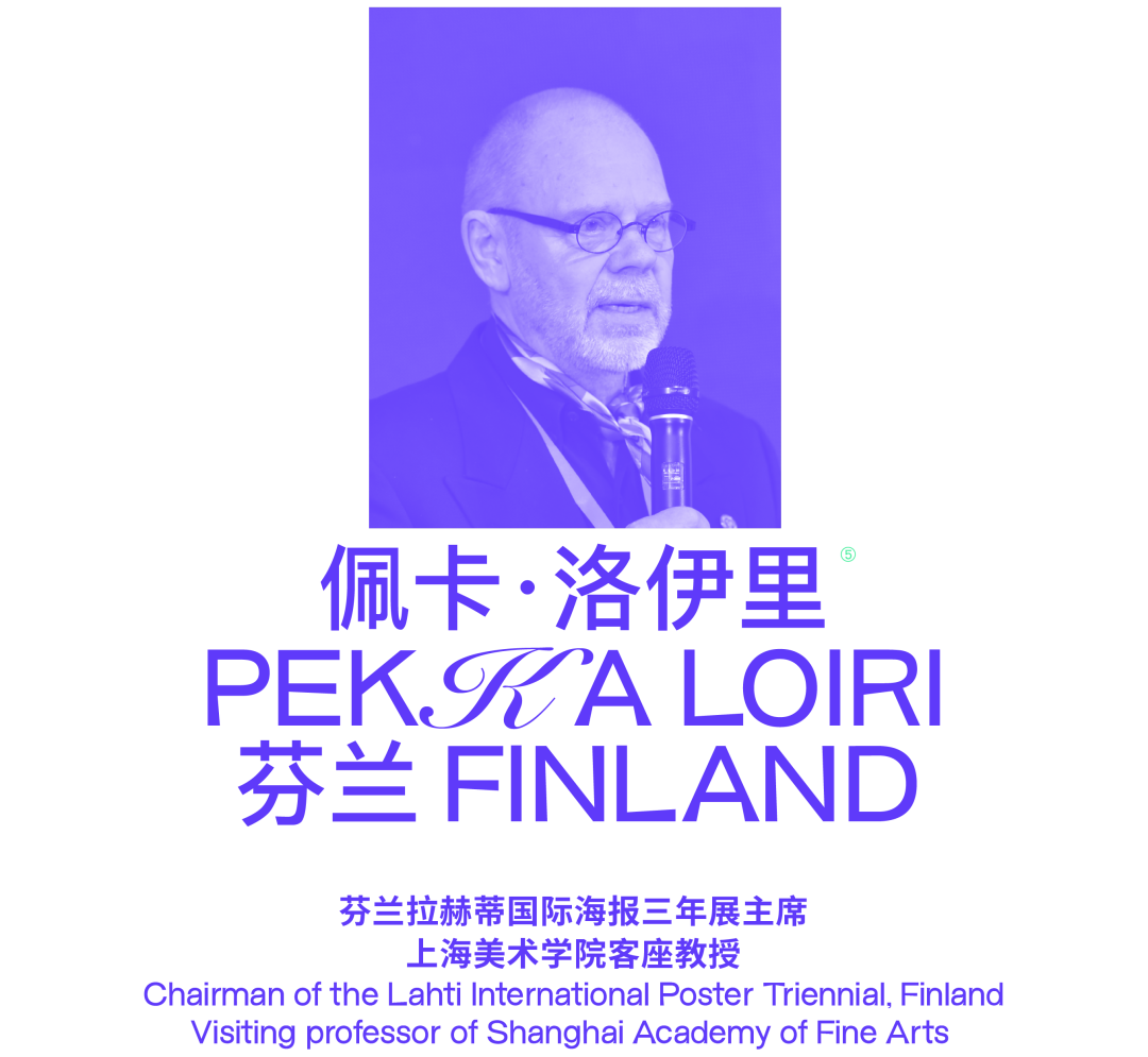 佩卡·洛伊里,芬兰拉赫蒂国际海报三年展的主席、上海美术学院客座教授、BICM墨西哥名誉理事会成员、国际海报设计委员会BICBé成员、设计师联盟名誉成员。Loiri曾荣获数十项国际大奖,在数十个国际展览中担任评委。他获得了政府的设计奖、芬兰文化基金会的奖项,并被选为年度平面设计师,并被授予政府的艺术和设计奖,Grafia的白金顶,以及Pro Finlandia奖章。ProCom协会授予他终身成就奖。Loiri一直参与教育事业,例如在赫尔辛基艺术与设计大学担任MG学院的院长。他曾担任许多高校的客座教授,并在世界各地的多所大学举办讲座和研讨会。