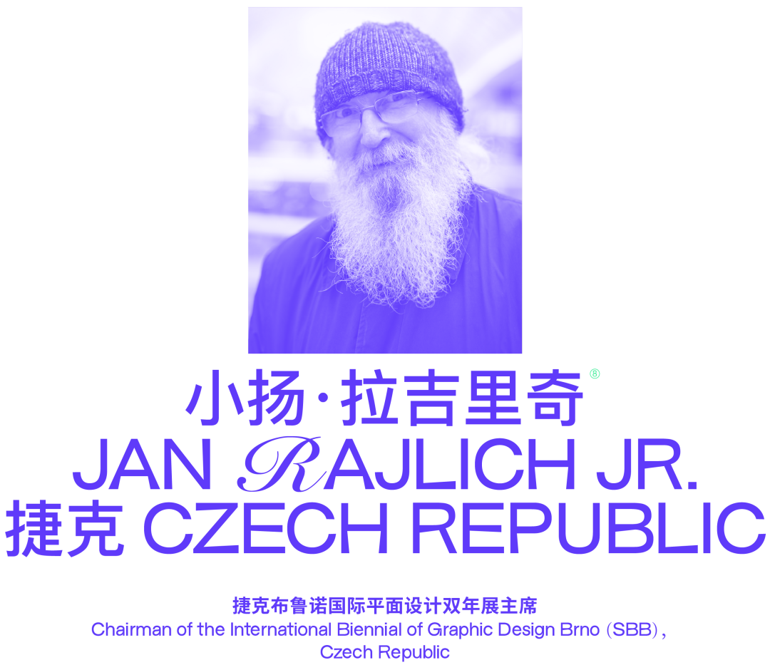 小扬·拉吉里奇,1950年生于维斯科夫(捷克),自1999年起担任布鲁诺双年展协会(SBB主席)。1974年毕业于VUT布鲁诺理工大学建筑系。1996—2014年担任VUT布鲁诺科技大学工业设计系主任。目前他已经举办37次包括海报、平面设计、丝印画和绘画在内的个展,并参加了400多次群展。2001年获得布鲁诺市应用艺术奖。此外,他还是捷克共和国视觉艺术家联盟、Q艺术协会的成员,以及布拉格马萨里克艺术学院和美国国际平面设计师协会(ISGD)荣誉会员。