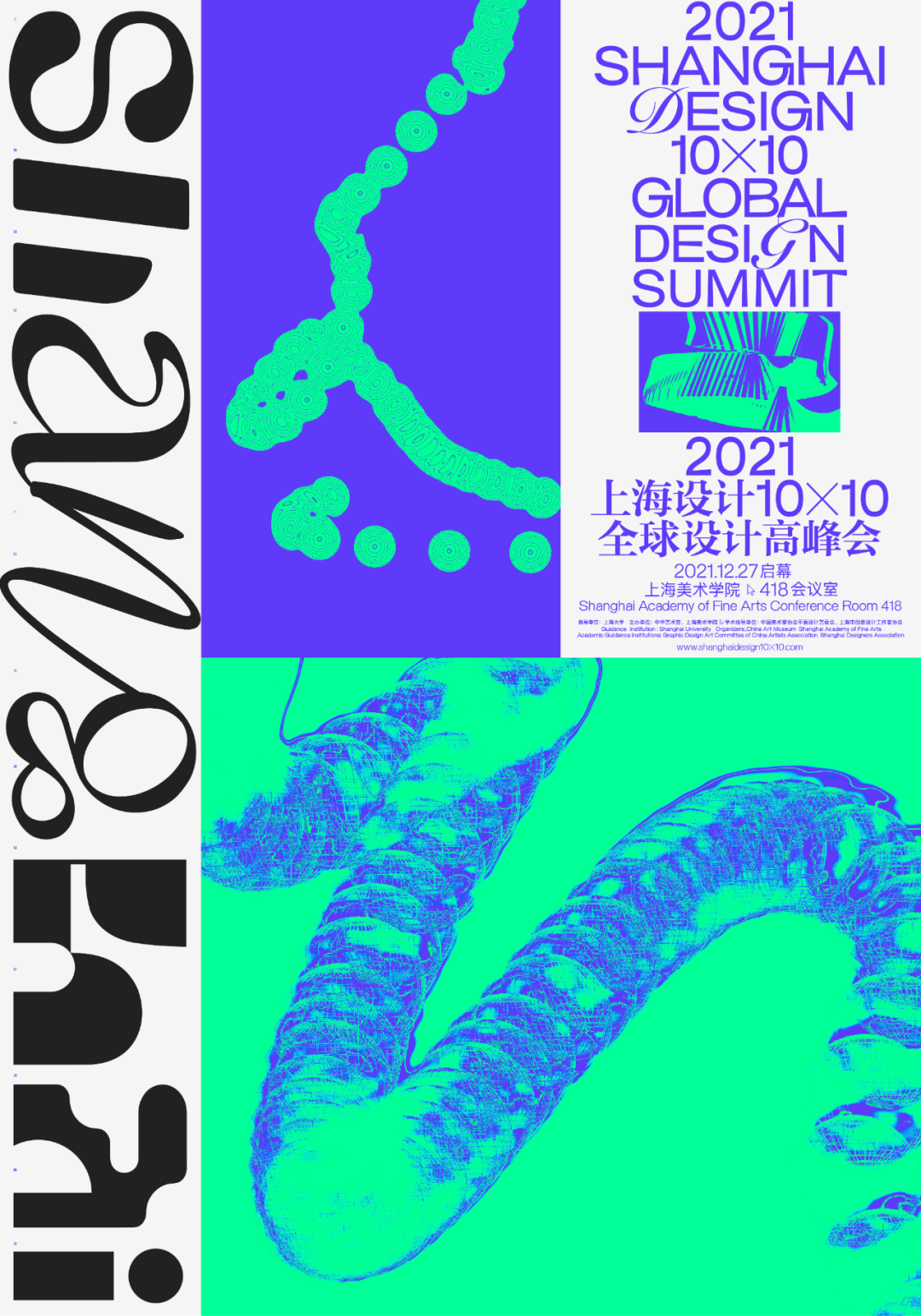“2021‘上海设计10×10’全球海报邀请展”是本年度“上海设计10×10”活动的展览环节,以“上海印象”为主题,通过全球11位联合策展人邀请了来自20多个国家和地区的100余位顶尖设计师进行主题性海报创作,旨在展现全球设计师对上海城市的印象和图像表达。以此,形成与“上海设计邀请展——域•海报”之对话,助推中国设计全球影响力,促使全球设计在上海发声,促进未来设计在上海发生。