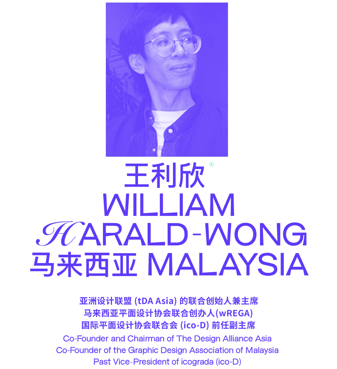 William Harald-Wong is the Co-Founder and Chairman of The Design Alliance Asia; Co-Founder of the Graphic Design Association of Malaysia and a Past Vice-President of icograda (ico-D). He is also a member of the International Committee for Emirates International Poster Festival (EIPF), Dubai. William works at the intersection of brand, culture, city, and community, enhancing a place’s human and cultural experience. He is passionate about Southeast Asian culture and has documented the region extensively in his early years. He is also Managing Partner and Design Director of Zakti Strategic Design, a company working on culture-related projects including next-generation museums and exhibitions and promoting cultural exchanges with countries.His current awards include the Design for Asia Awards (Hong Kong) 2015, the Malaysian Design Development Centre Lifetime Achievement Award 2011, etc.