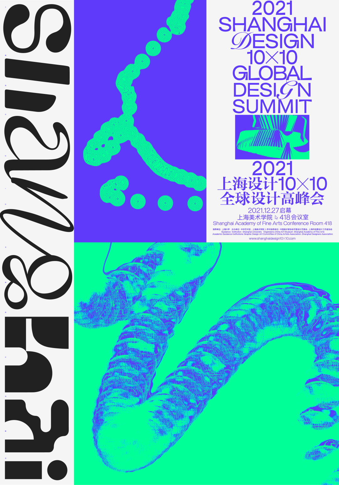 2021年12月27日,“2021‘上海设计10×10’全球设计高峰会”在上海大学上海美术学院成功举办,会议上半场由全球十个顶尖设计组织的设计领袖和精英针对二十一世纪平面设计未来的最前沿问题展开学术性分享和前瞻性讨论,下半场由国内的设计专家与新生代设计师们针对海报的边界、海报的未来等主题发表演讲,以此形成“上海设计”和全球设计之对话。上海大学党委常委、副校长聂清、上海美术学院党委书记陈静、上海美术学院党委副书记宋国栓、上海美术学院副院长陈青以及数十位国内外设计界嘉宾出席了此次高峰会并发表了演讲。