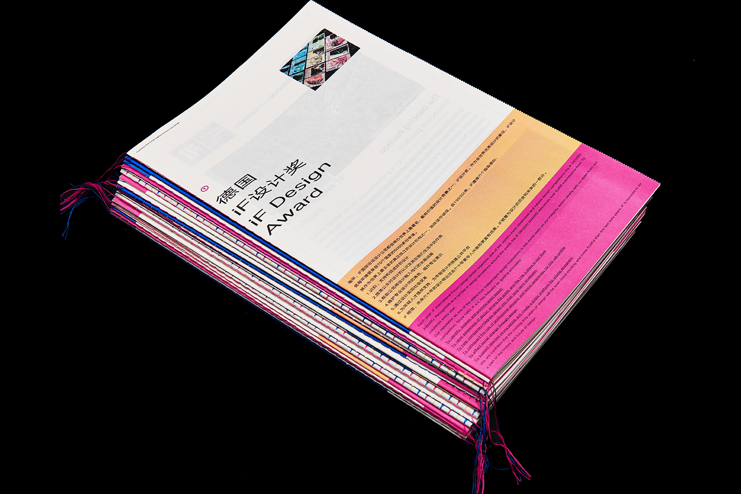 宣传册用报纸折叠包装,用纸绳装订,体现了当代文化与传统方法相结合的趋势。白色的图书外盒与里面五颜六色的图书形成对比,仿佛有惊喜在等待着。